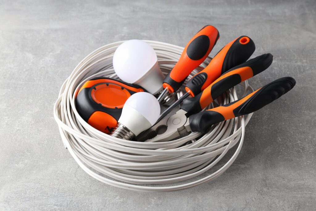 Cordless drills, hammer drills, and saws are often needed for mounting boxes, drilling through surfaces, or fixing installations in place.